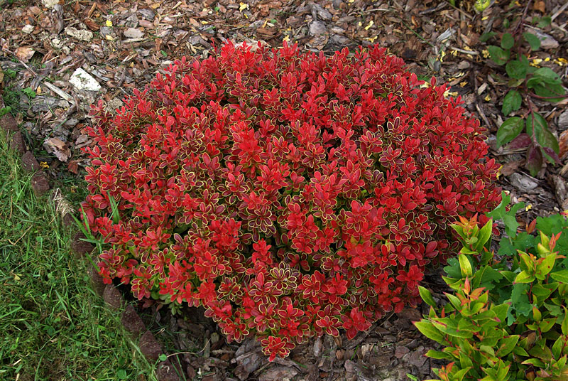 Барбарис Адмирейшн (Berberis thunbergii 'Admiration') – это декоративный кустарник, который станет настоящим украшением вашего сада. Этот сорт отличается компактными размерами и яркой листвой, которая меняет цвет в зависимости от сезона. Весной и летом листья имеют насыщенный красный оттенок с золотистой каймой, а осенью приобретают огненно-оранжевый цвет.