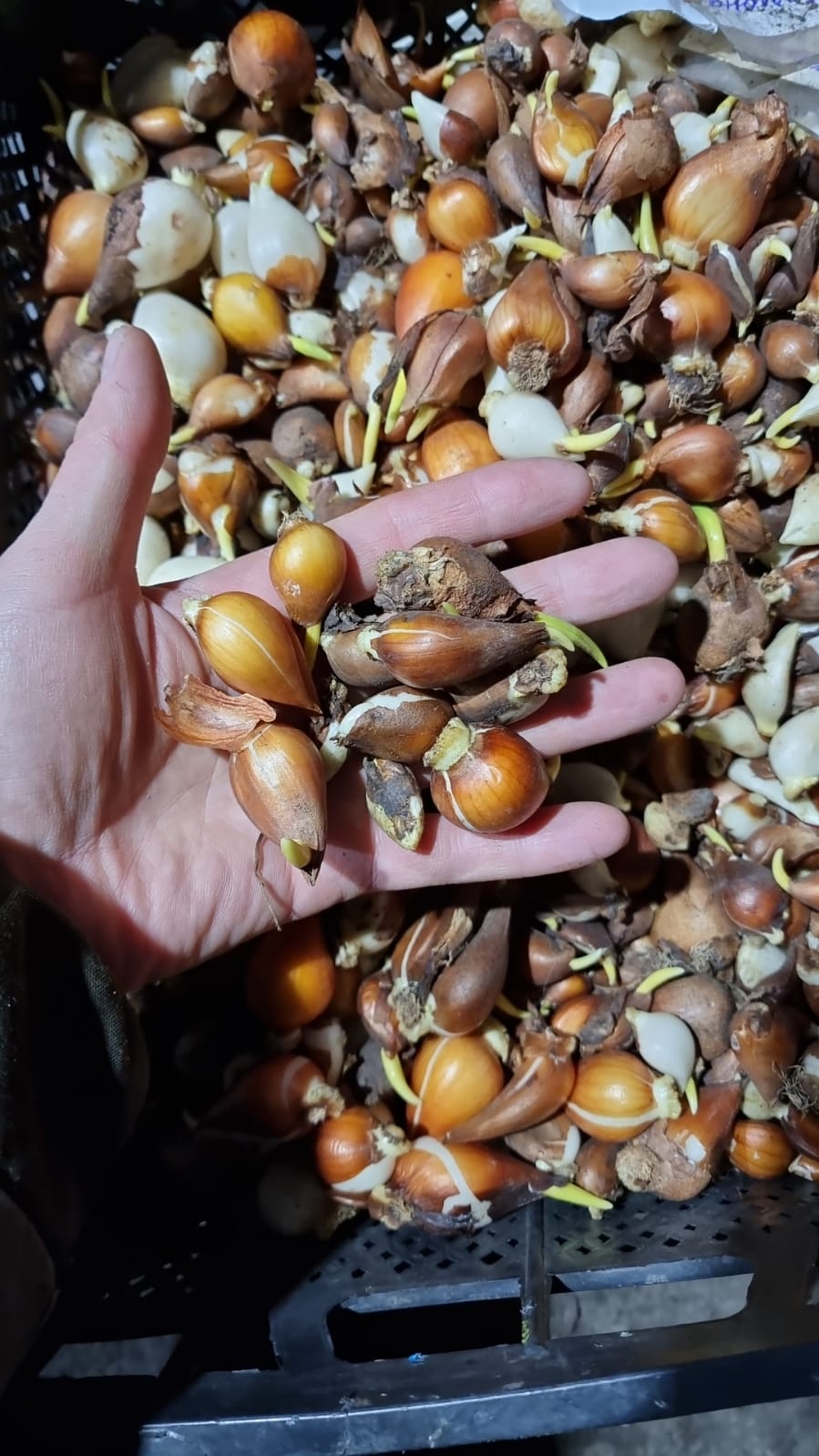 Сначала луковицы, клубни и корневища бережно упаковываются в воздухопроницаемую бумажную оболочку. Такая упаковка обеспечивает естественную вентиляцию, защищает от избыточной влаги и помогает сохранить твердость и свежесть материала.